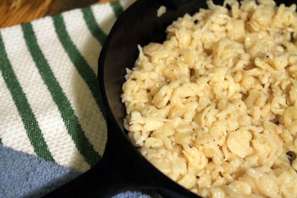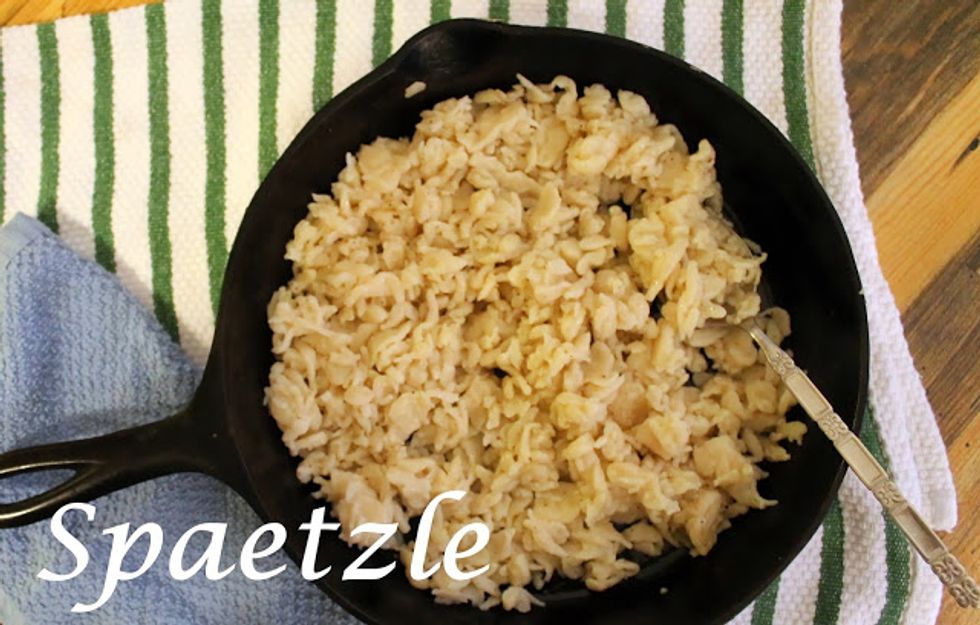 Spaetzle is basically a quick and easy to make German pasta. It is one of my favorite things to make at home because it adds texture and a little finesse to our usual dinners in the place of pasta, potatoes or rice.