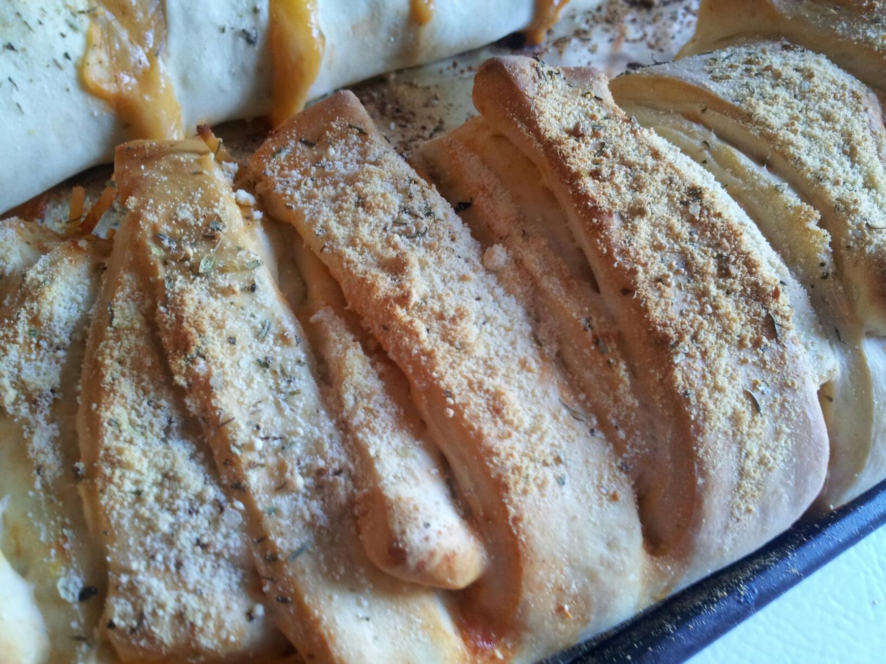 Spaghetti and Garlic Bread wrapped into one! It is even delicious cold! You can mix it up a bit with different kinds of cheese or different seasoning :)
