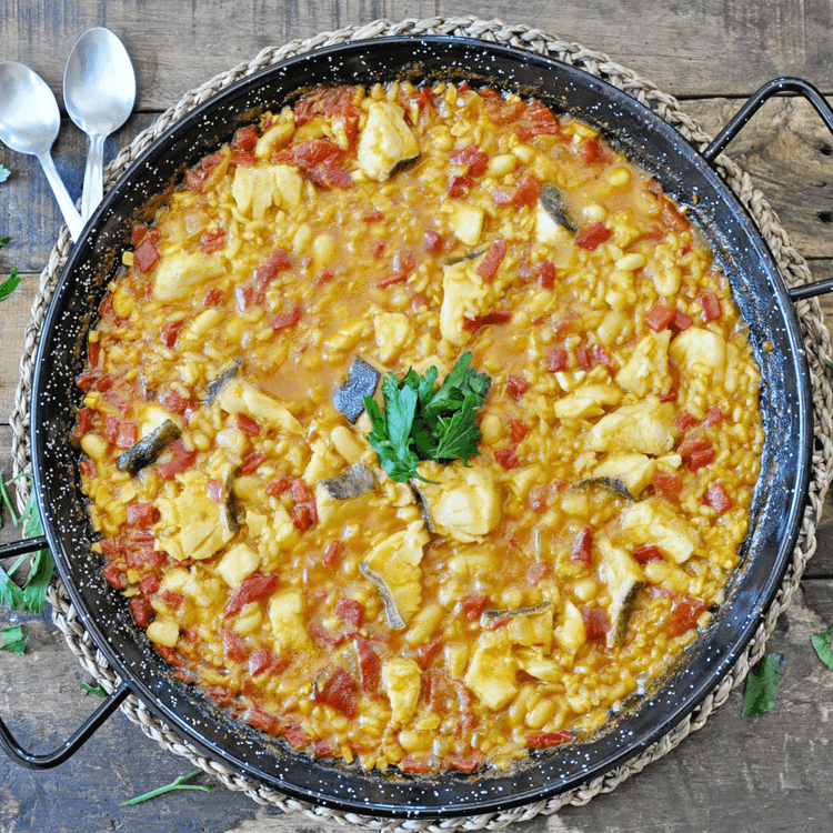 This Spanish ¨Arroz Empedrado¨ Rice with White Beans and Cod is one of the best Spanish rice dishes ever. Loaded with an immense amount of flavor, made with simple ingredients and done in about 45 minutes. This is a regional dish from Alto Palancia in the provience of Castellon. Not as popular as paella, but promises to be one of the greatest dishes that hail from Spain.