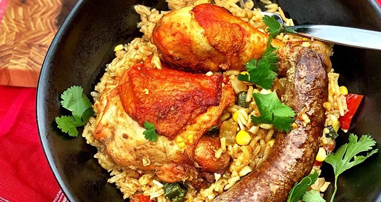 A traditional dish in Spain, arroz con pollo means "chicken and rice". We've added a tasty twist to this classic recipe with our Fullblood Wagyu beef chorizo! The long grain rice, corn, onions, peppers, spices, chicken, and Wagyu beef make for a palate-pleasing medley. Try this soulful and flavorful recipe today!