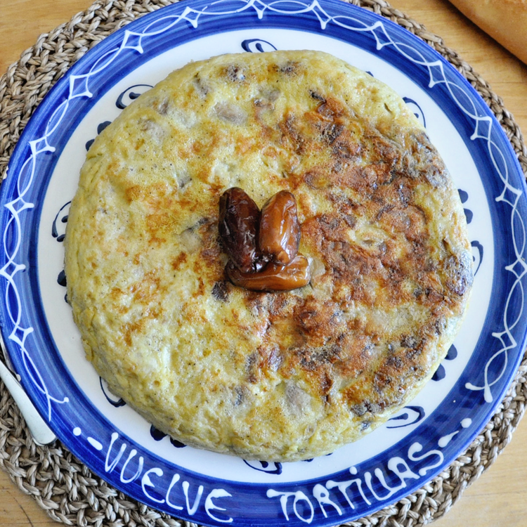 Spanish Tortilla with Mushrooms, Dates & Manchego Cheese