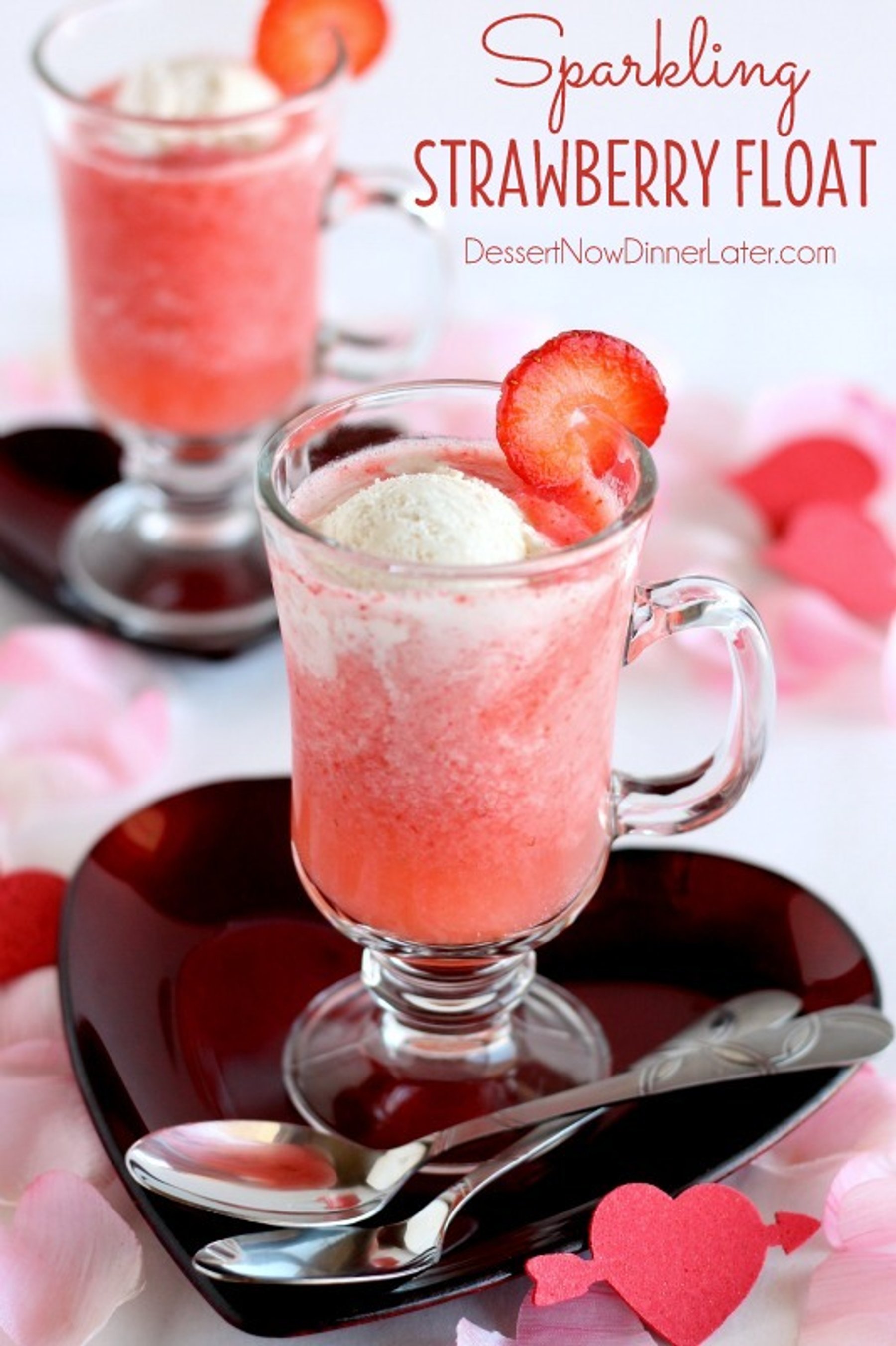 This Sparkling Strawberry Float is made with a fresh strawberry puree, some carbonation, and of course, vanilla bean ice cream!