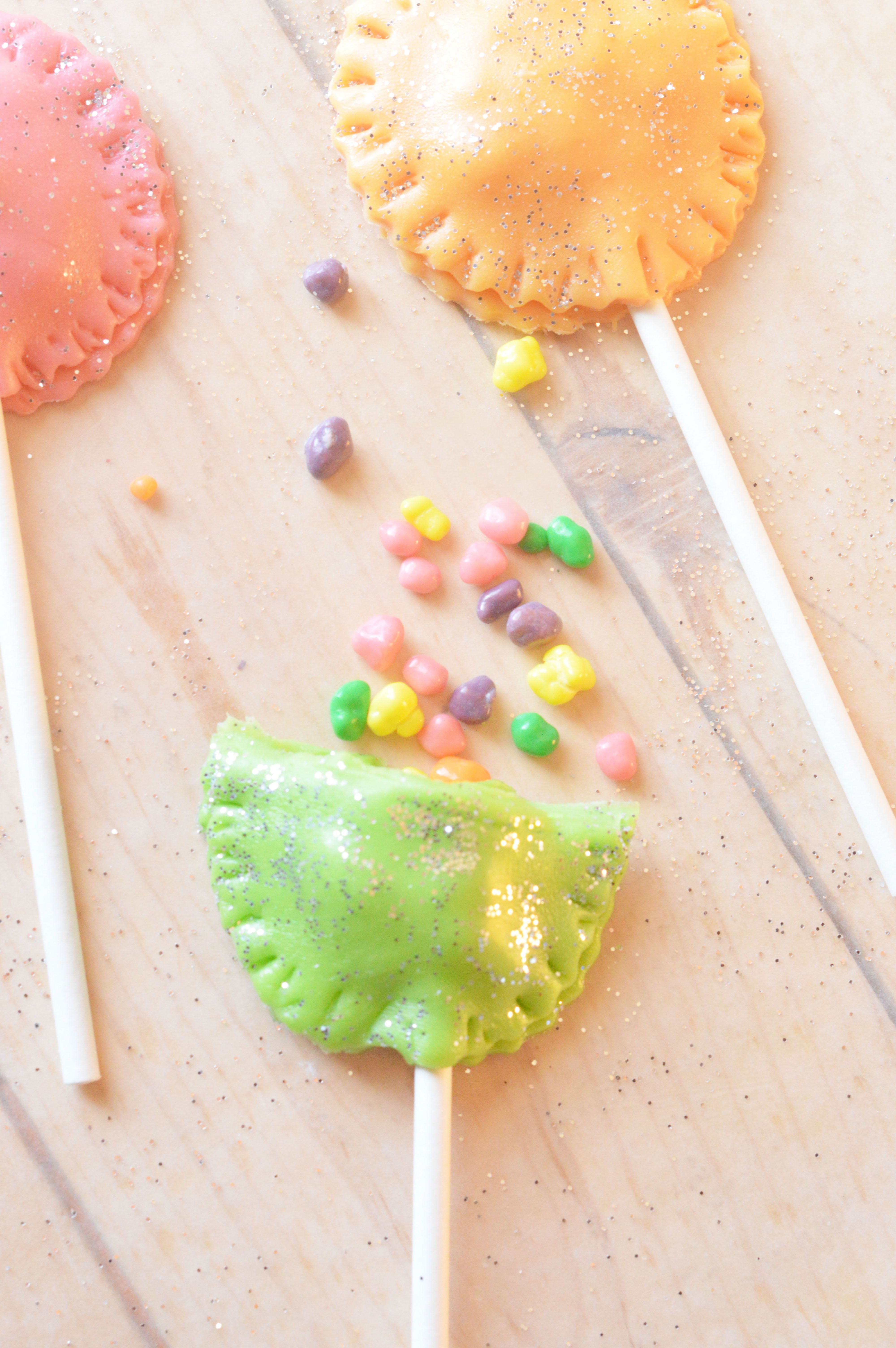 These sparkly tootsie roll surprise pops are adorable and delicious! No one will be able to resist them.