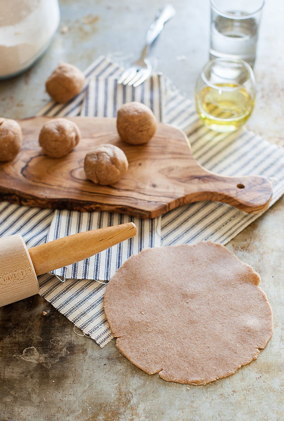 Mix in the oil. ½ cup of the water and mix in, adding in the last tablespoon little by little, until slightly sticky dough forms. You may not need all of...