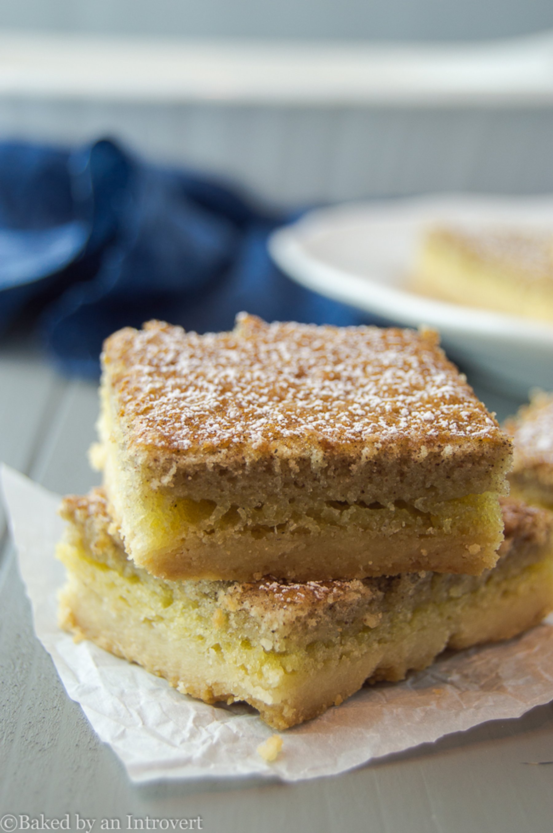 Take advantage of fall apple cider with these easy bars. A two layer bar with a sugar cookie crust, topped with a creamy spiced apple cider filling, and finished with a light dusting of powdered sugar.