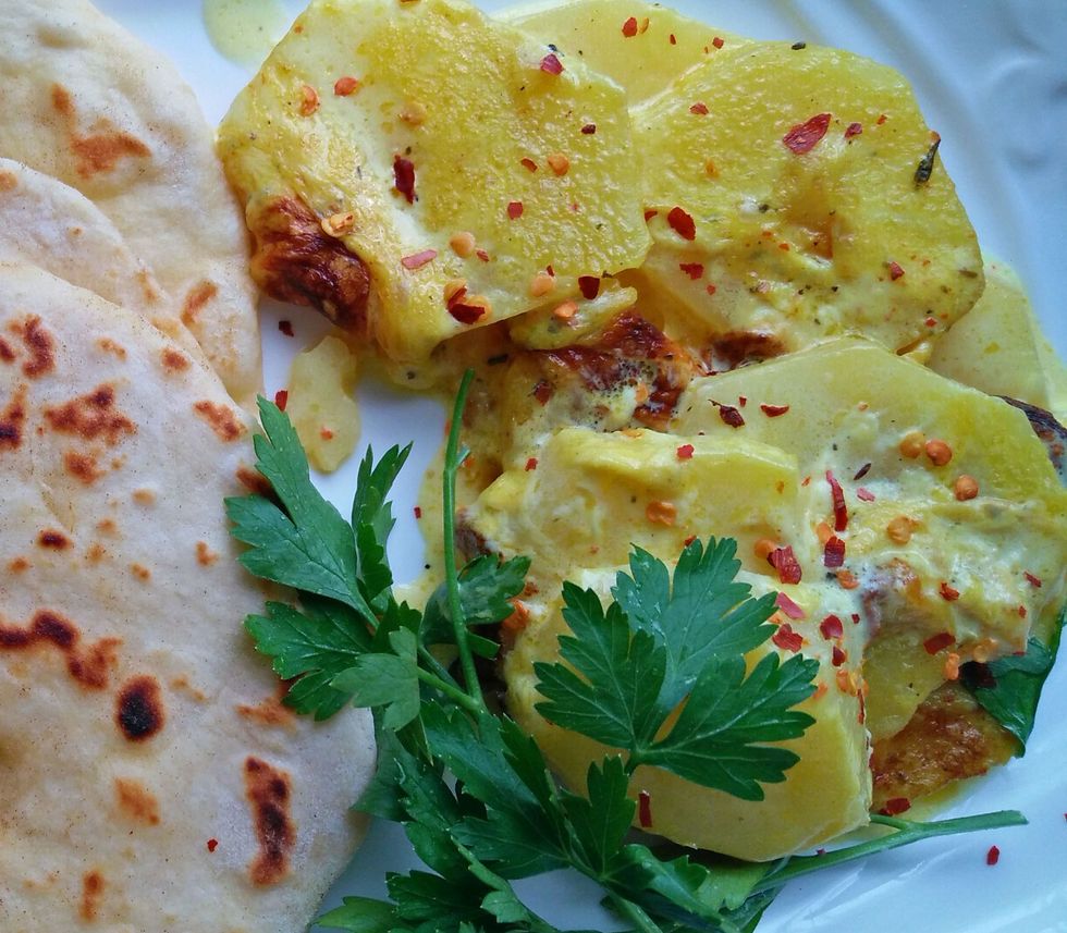 Folded in a mixture of cream, butter and herbs, makes this Spicy and creamy baked potatoes a truly delectable dish.