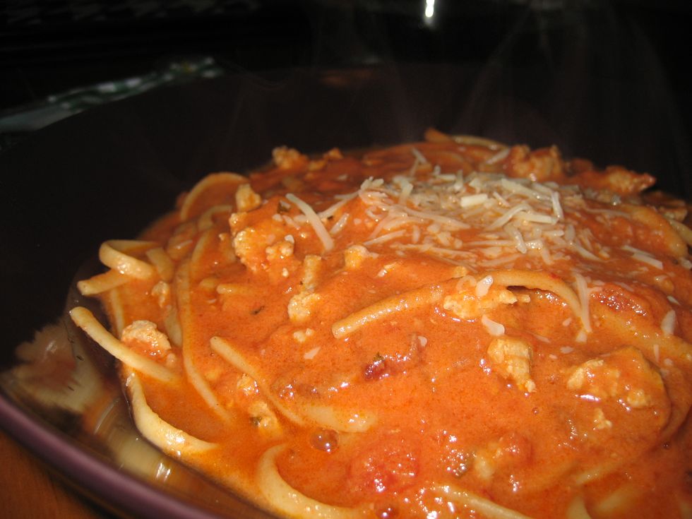 While the vodka sits (maybe after about 30 minutes), go ahead and cook the ground chicken...