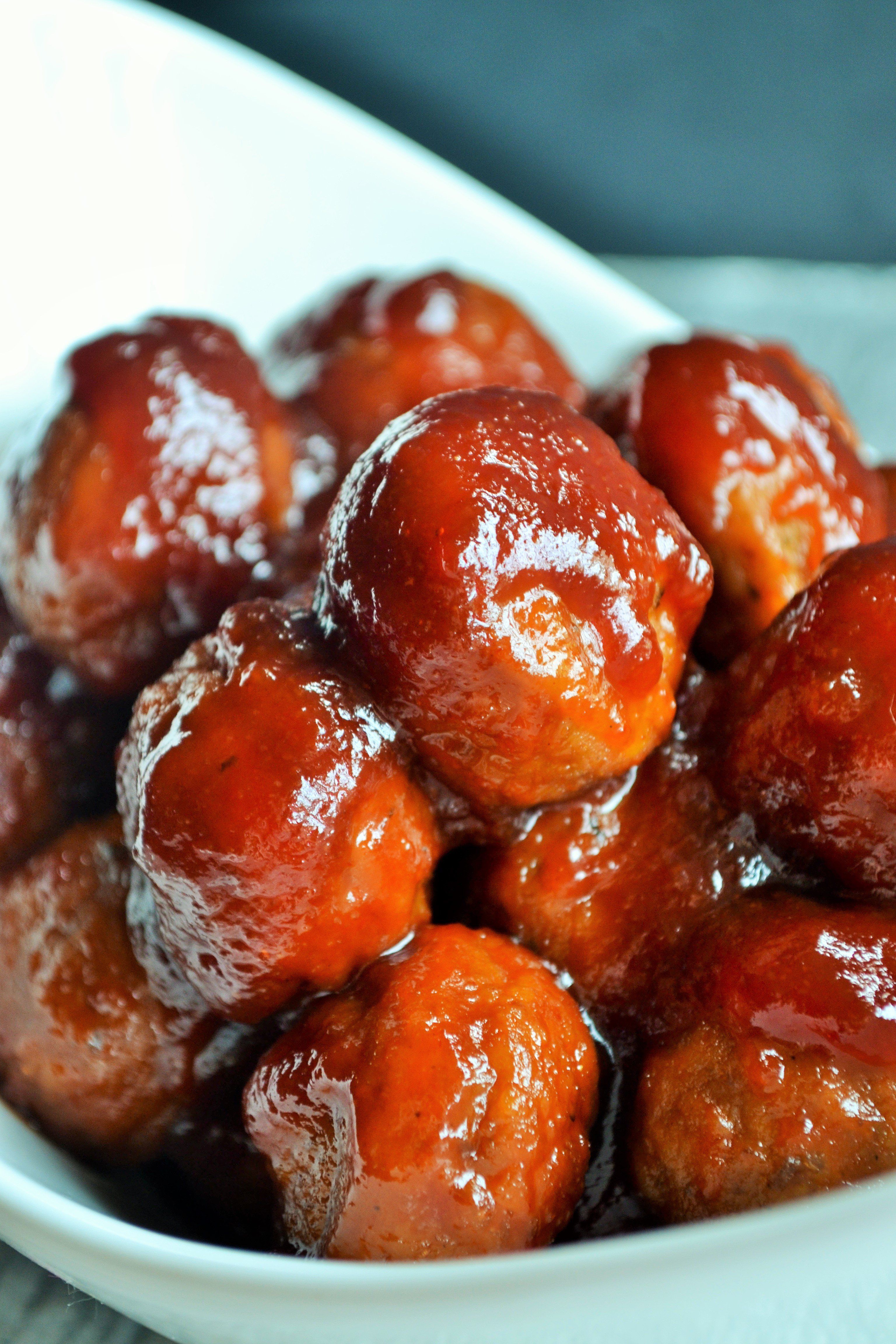 Spicy BBQ Crock-pot Meatballs that are the perfect easy slow cooker appetizer for any social gathering. Sweet, spicy, easy to make, these Spicy BBQ Crock-pot Meatballs are completely ADDICTIVE!