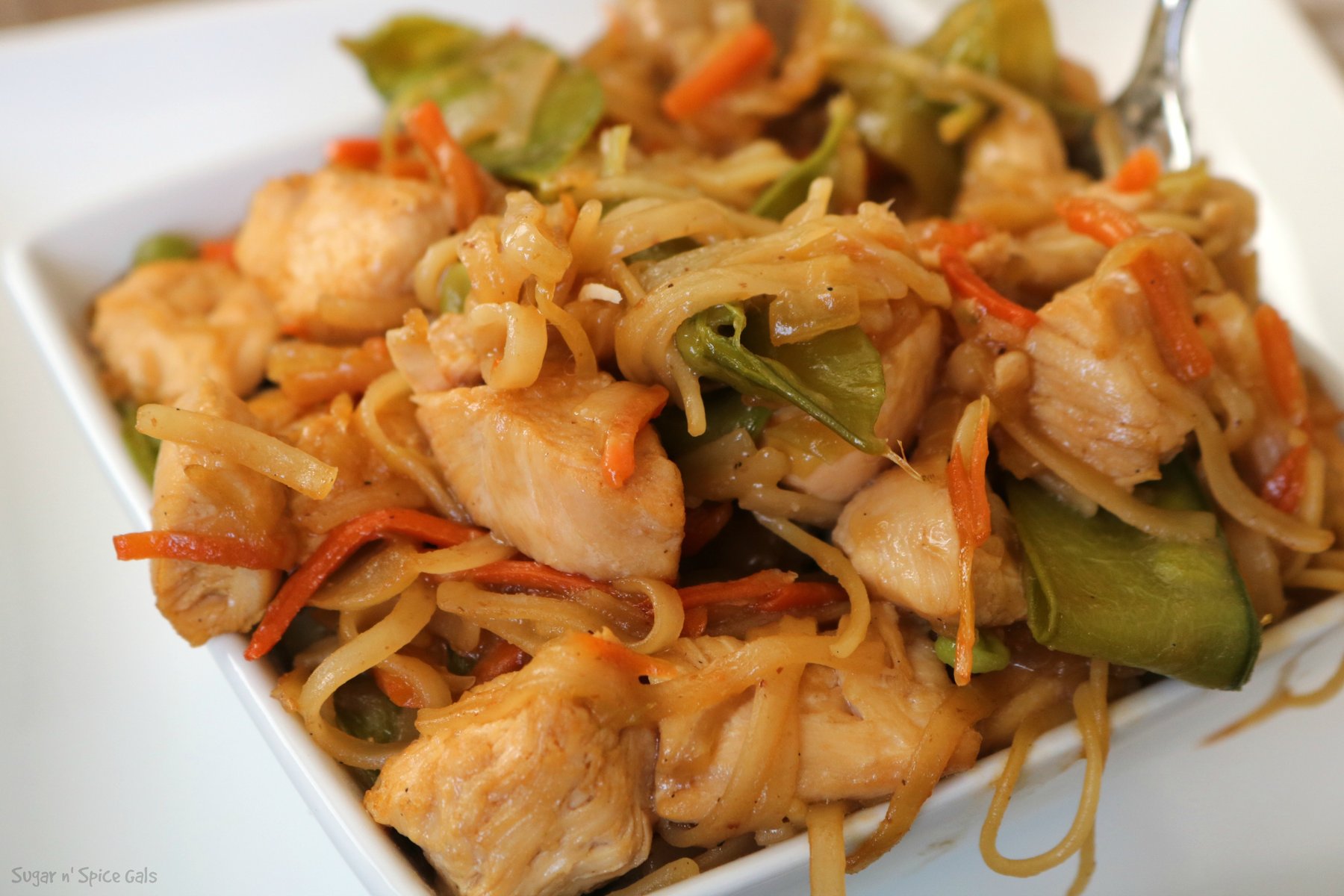 This chicken lo mein is so delicious. Full of lots of tasty flavor and a kick of spice. You can\\\'t go wrong with this dish.