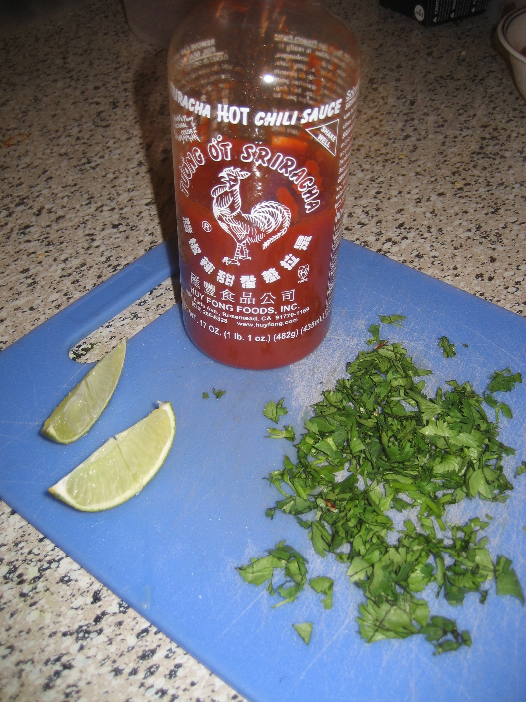 cilantro, lime wedges and sriracha for garnish (optional, but HIGHLY advised)