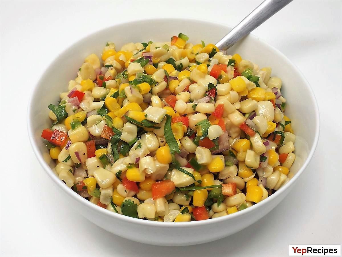 Spicy Corn Salsa YepRecipesApril 09, 2022 1608 YepRecipes.comCorn, red peppers, onion, jalapeno, and cilantro tossed with lime juice and olive oil.1See the full directions on my site