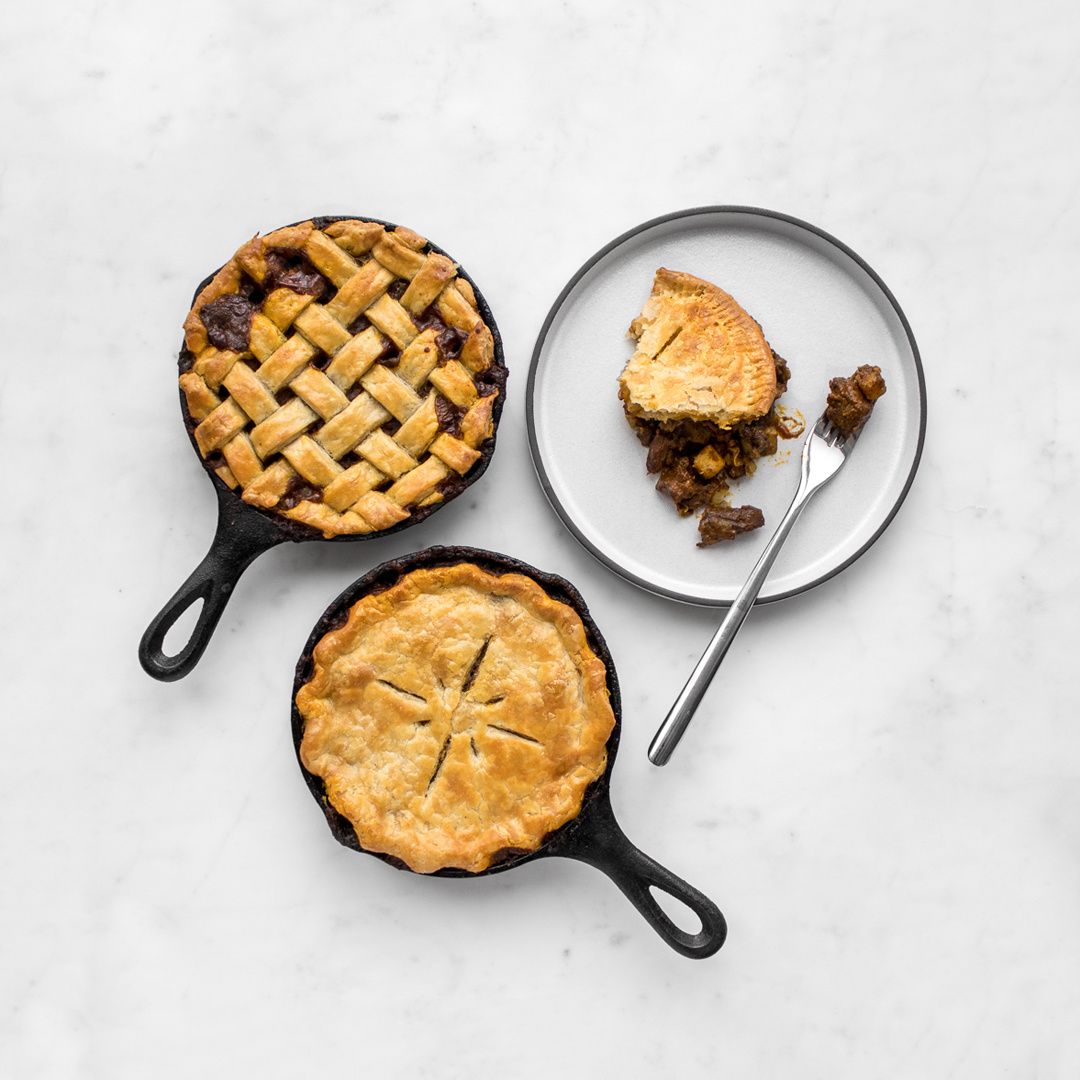 Beef pot pie is the ultimate mix of art and science. An equation of meat, veggies, sauce, filling and beautiful assembly makes for the flakiest, crispiest, stewiest (we could literally go on forever), pot pie. You wont even miss the bottom crust.