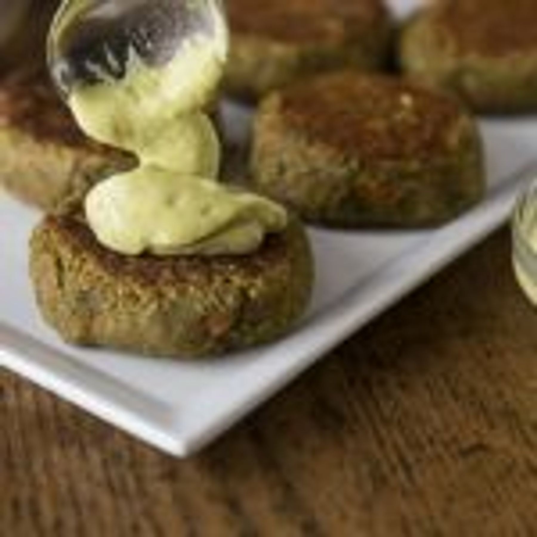 Spicy curry lentil burgers recipe is easy and delicious. Served with an avocado yogurt sauce. It's vegetarian and gluten free too. Serve on a bed of greens.