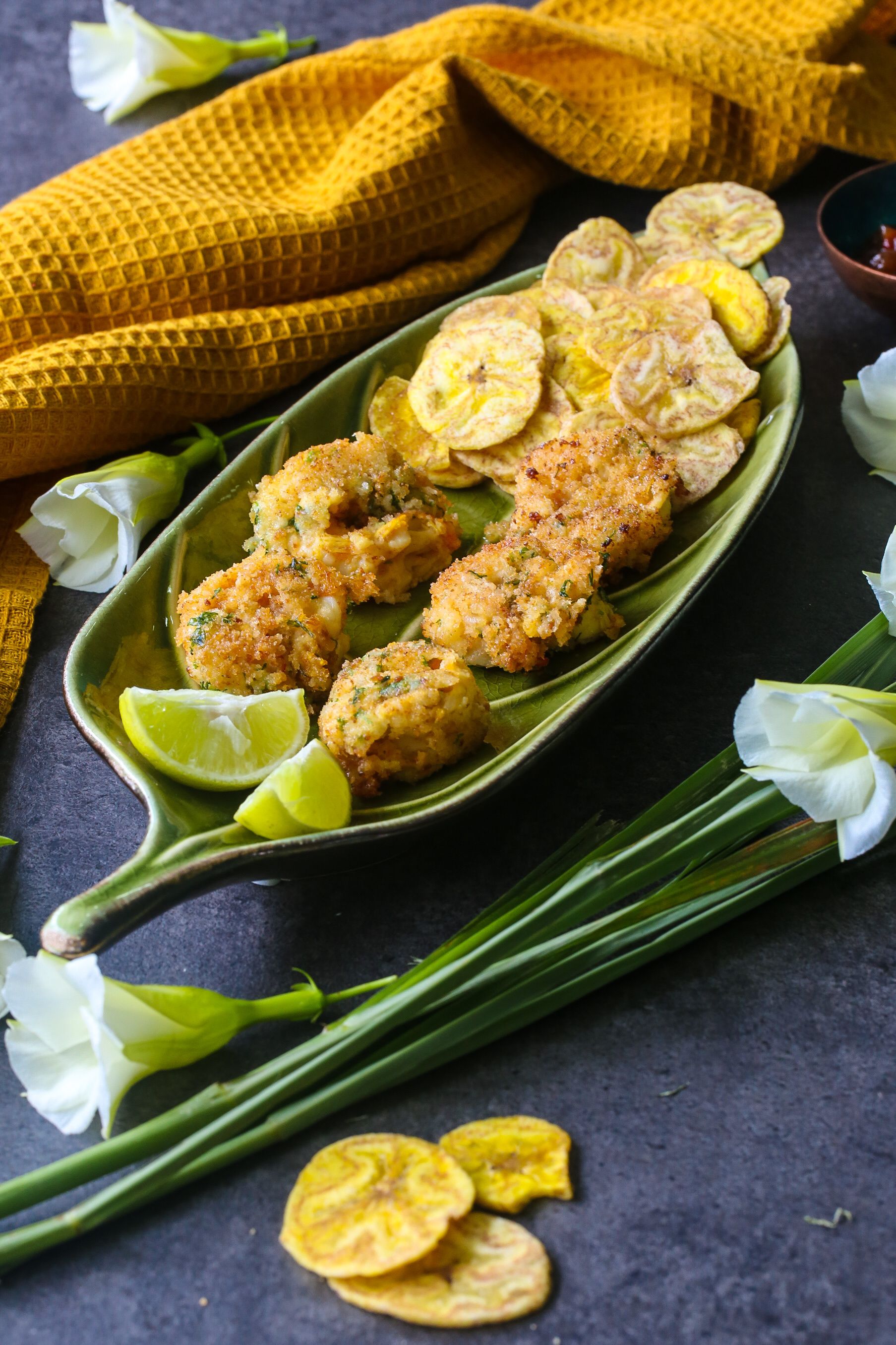 These delicious fried prawns, marinated in pineapple juice with crunchy coconut crust make an impressive tropical starter or main course recipe!