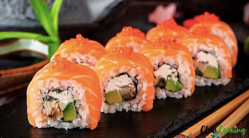 This spicy salmon sushi is perfect for making at home. Avocado, salmon and cucumber are all traditional sushi stuffings and although it usually takes years to perfect your sushi making technique, with this recipe, you can make decent sushi at home at a low cost.