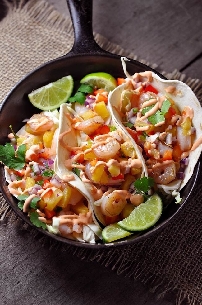 These spicy shrimp tacos take only 15 minutes, and the pineapple salsa compliments the shrimp and balances flavors perfectly. A healthy and delicious recipe for when you need a quick dinner, or anytime you want to impress!