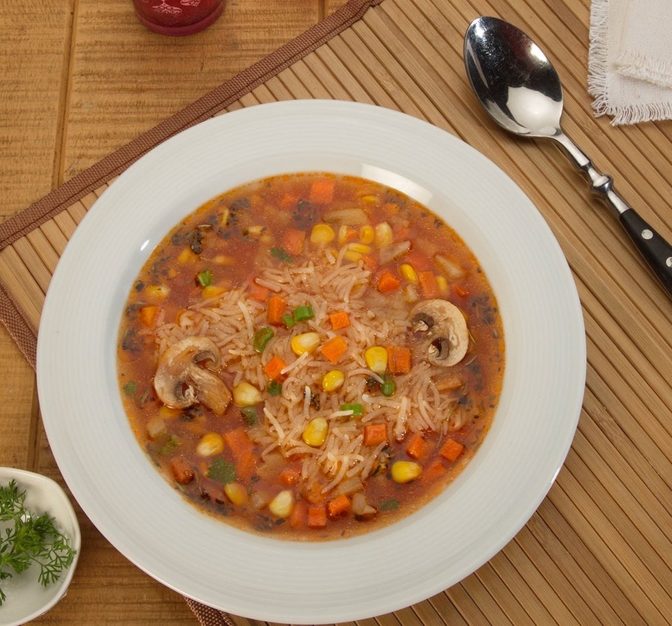 Spicy Sweet Corn And Mushroom Rice Soup
