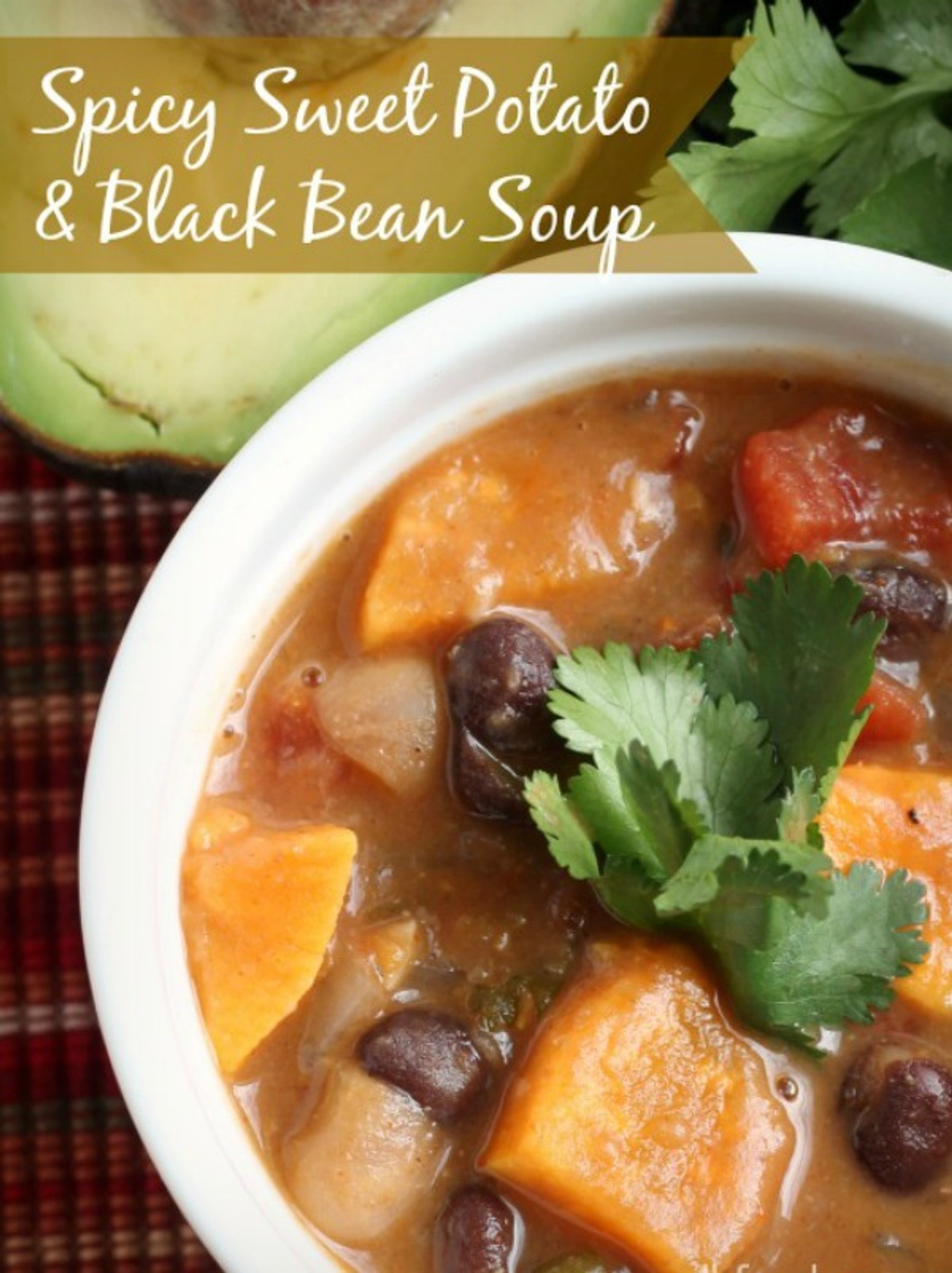 Sweet Potatoes and Black Beans are made for each other. They come together beautifully in this soup with an added kick from some tomatoes and green chilies. It is my two year olds favorite meal!