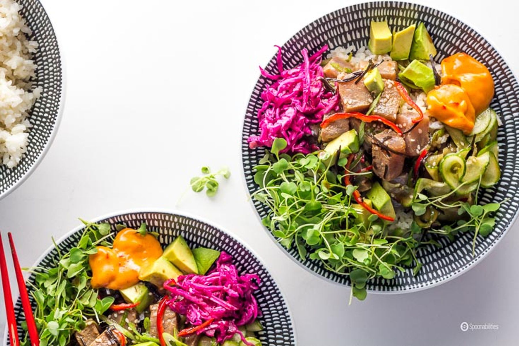 Spicy Tuna Poke Bowl – Ahi Poké Bowl with Hot Pink Mayonnaise