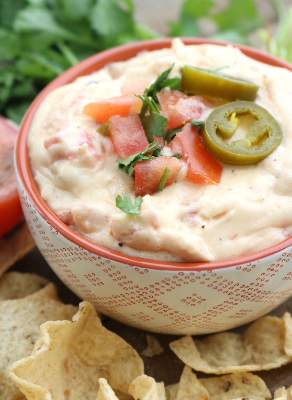 This spicy white queso dip is the perfect mixture of your favorite white cheeses with a little kick of spicy jalapenos.