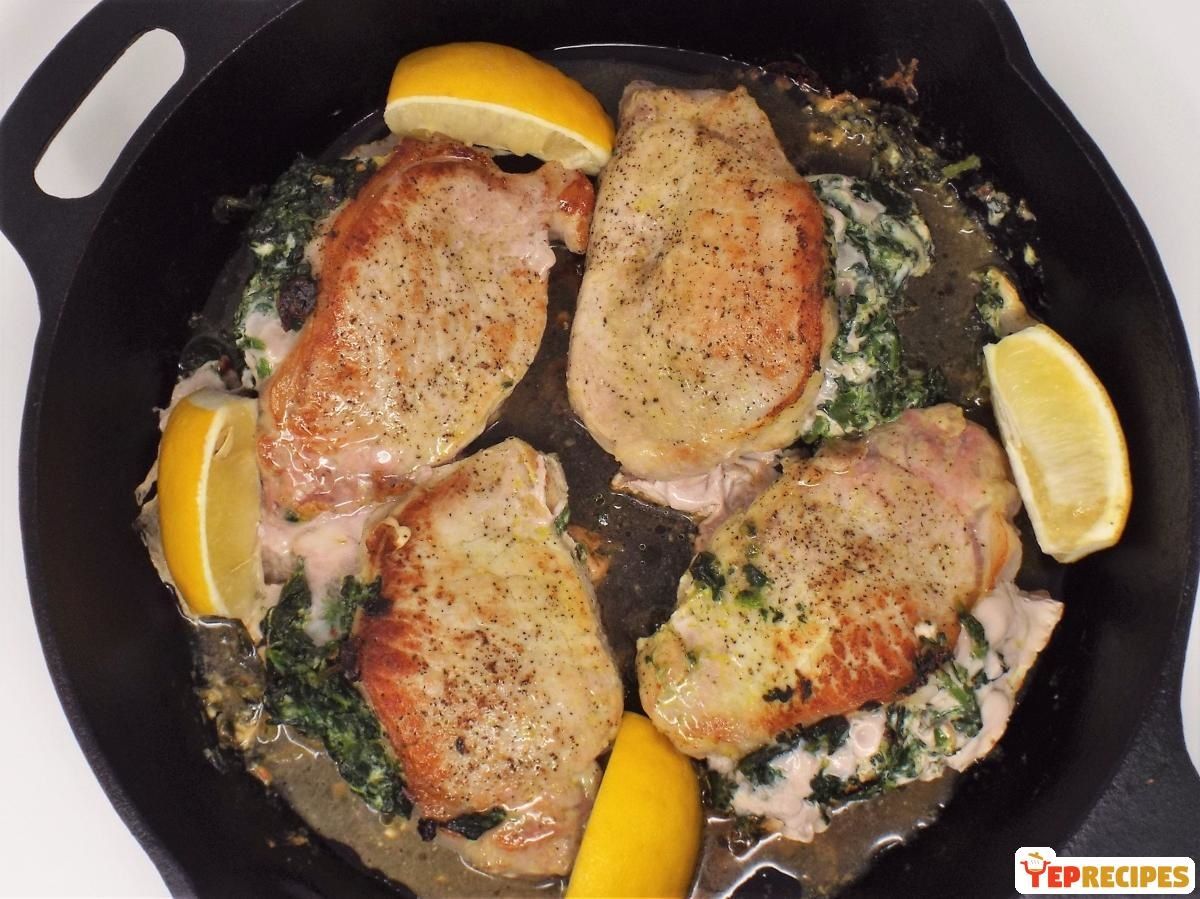 Spinach and Blue Cheese Stuffed Pork Chops YepRecipesFebruary 11, 2020 54 Thick cut pork chops stuffed with spinach and blue cheese, pan seared then finished off in the oven.1. Preheat the oven to 375°F.See the full directions on my site