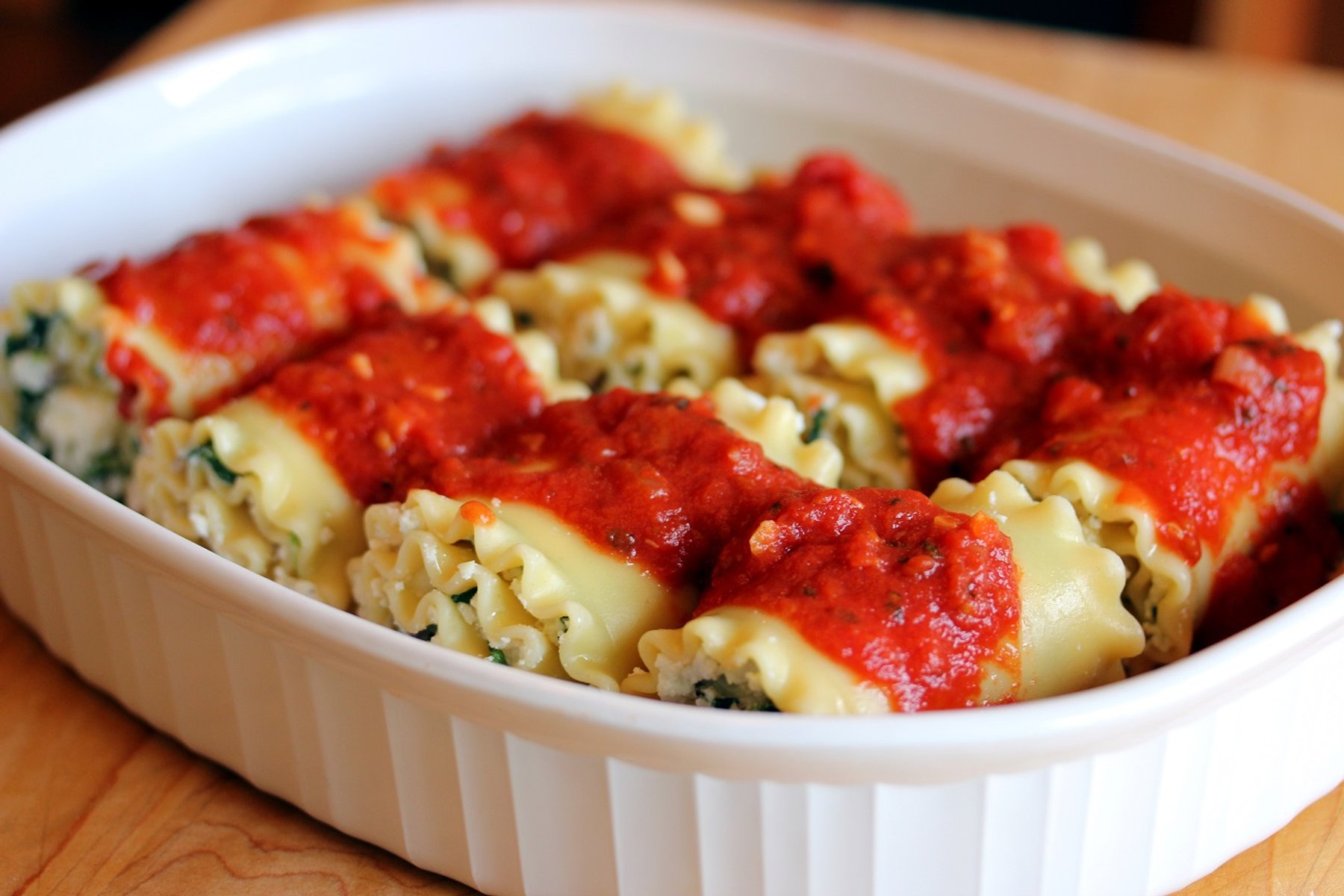Spinach and Cheese Lasagna Roll-ups with Spicy Marinara