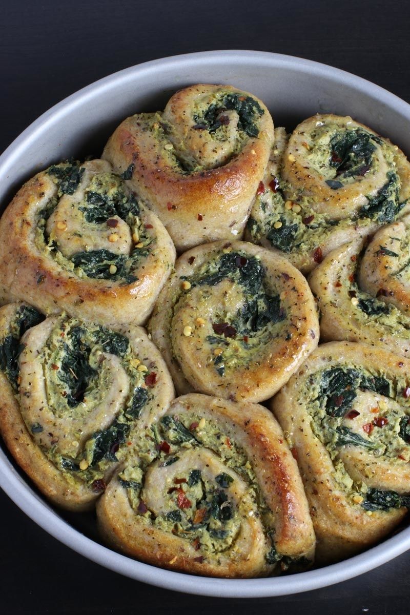 Vegan Spinach & Cheese Pizza Rolls are the perfect garlicky, cheesy appetizer. Great for lunch, too! Serve with your favorite pizza sauce for dipping.