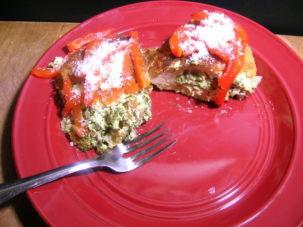 Succulent chicken breast stuffed with a mixture of Feta and Goat cheeses and fresh Spinach. So good!