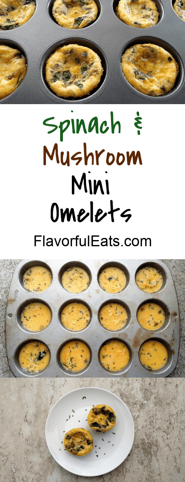 Spinach & Mushroom Muffin Pan Omelets are tasty little omelets filled with spinach, mushrooms, and cheese that are conveniently made in a muffin pan!
