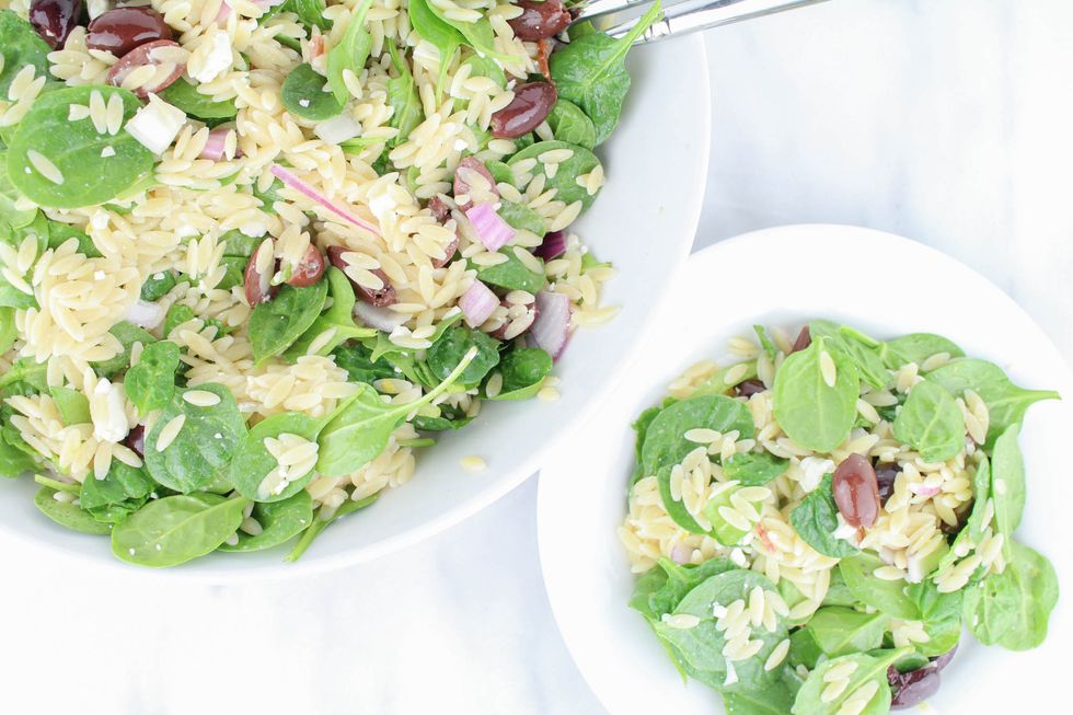 A light, healthy Spinach Orzo salad that is versatile enough for any occasion