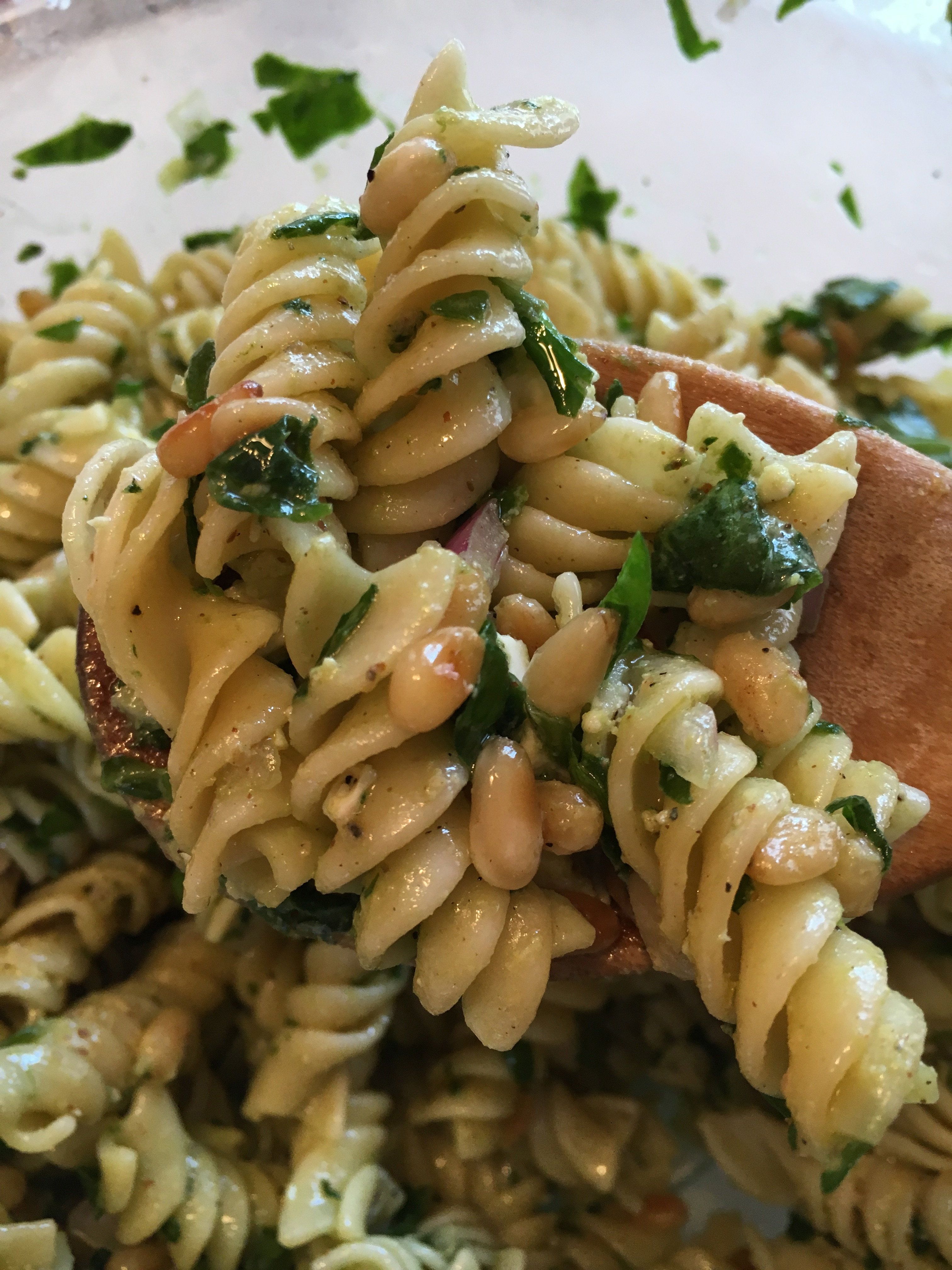 Spinach, pine nuts, feta, and pasta tossed in a delcious dijon dressing.