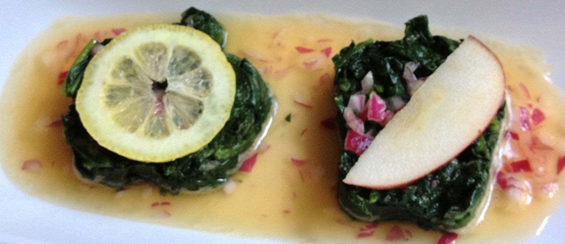 Note? If you want to impress the guest, follow the next steps to make the dish pretty. Otherwise, simply put the spinach in a serving bowl and pour sauce over the spinach.