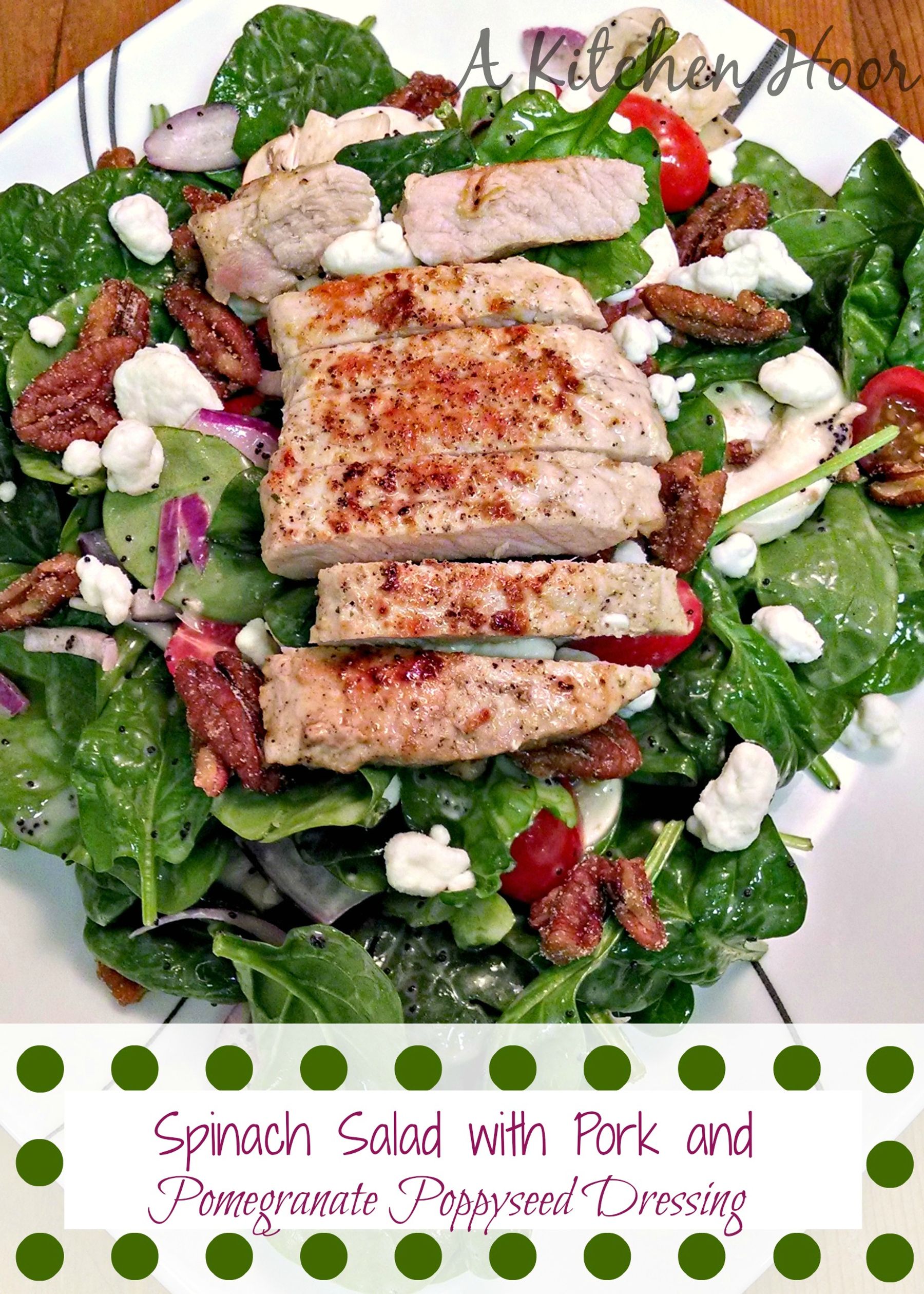 Spinach Salad with Pork and Pomegranate Poppyseed Dressing