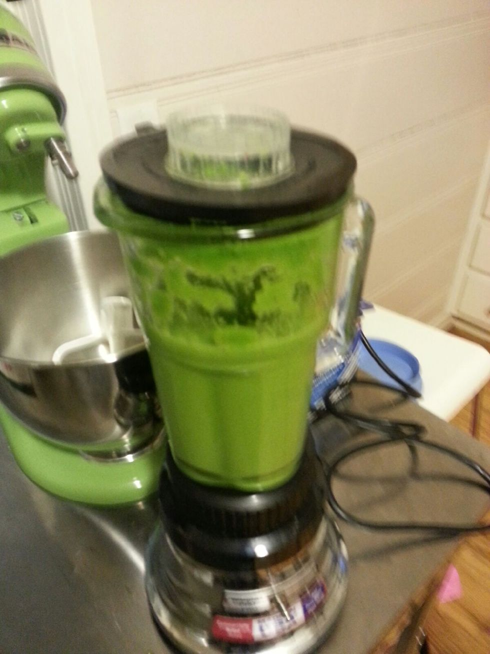 Gradually move to higher speeds and add the celery, pear, and apple. Add the banana and lemon juice last.