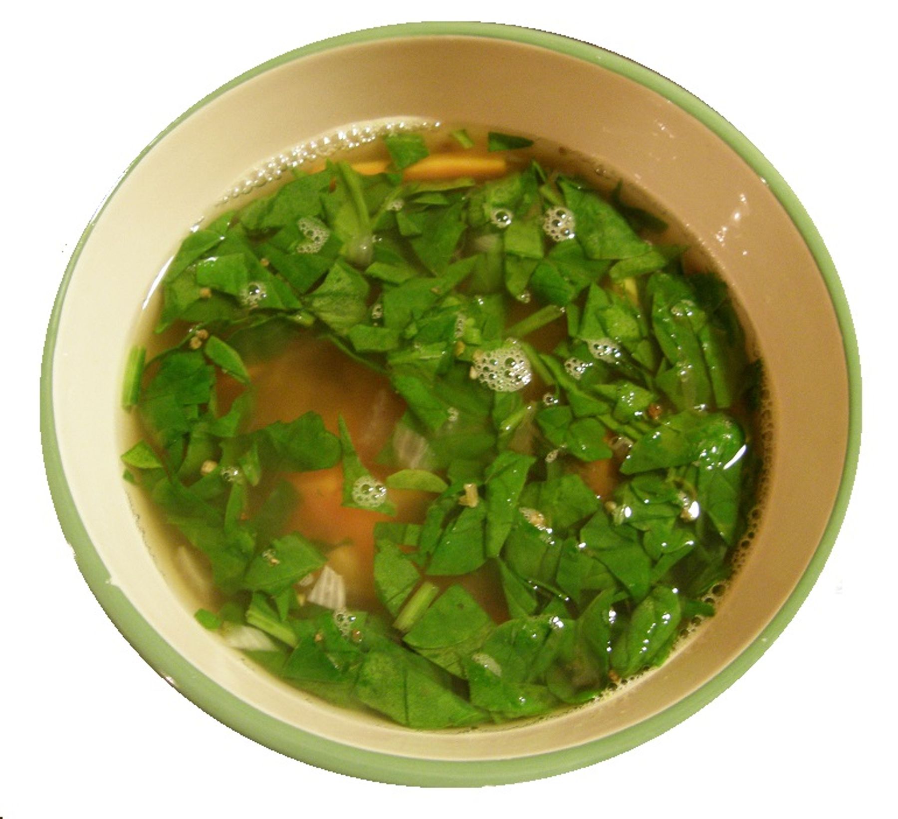 Stir in spinach and corn, cook for one minute then turn off the heat.