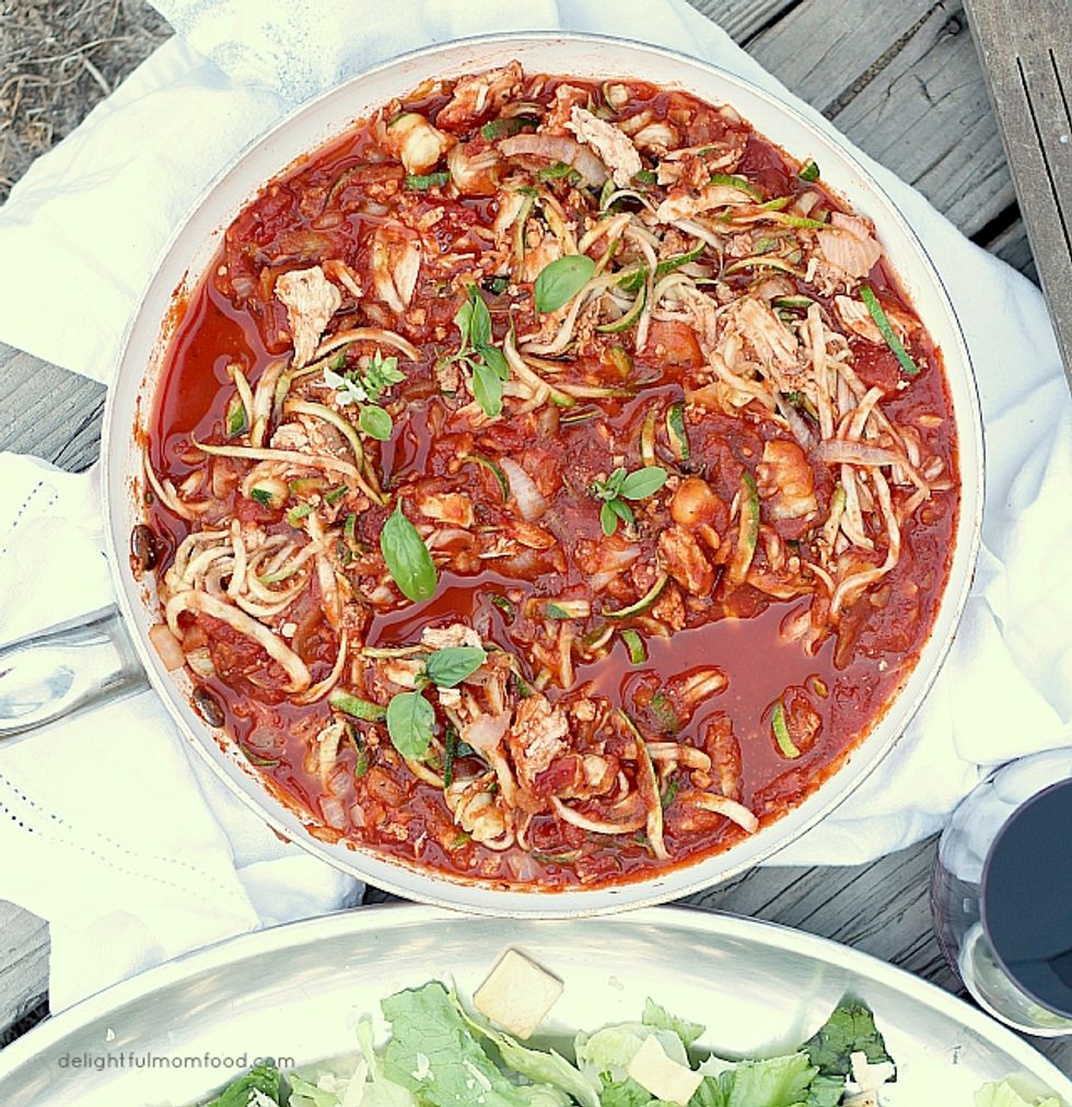 Zucchini Pasta In Marinara Sauce gives satisfaction of Italian pasta only this dish is fully made with vegetables and meat sauce (or tofu for vegetarian version). Kid tested and adult approved as this pasta dish is mostly vegetables!