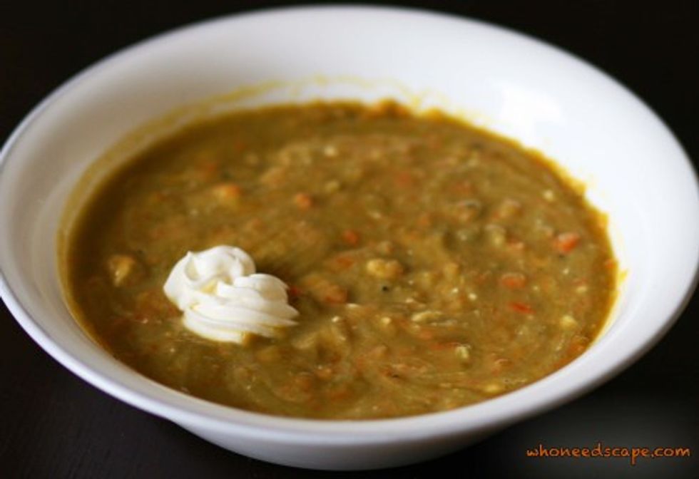 My favorite soup when I was growing up was split pea soup. I do not make mine with a ham bone; I just use chicken stock and add loads of garlic. It would great with Lori’s Cheesy Beer Bread!