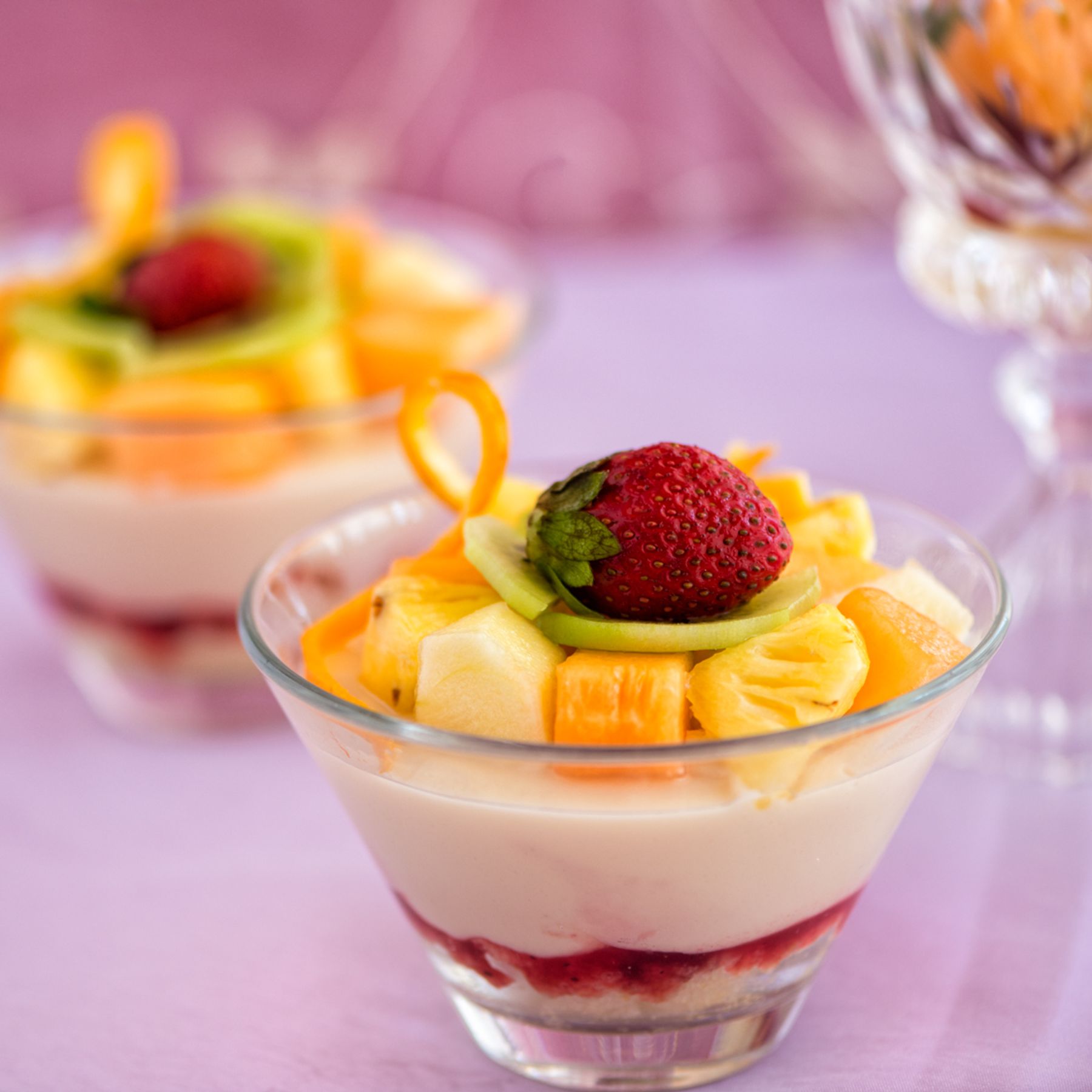 Sponge Fruit Trifle Delight is a delicious dessert different from the ordinary Fruit Trifle. With delightful layers of Sponge cake, velvety smooth Panna cotta and fresh fruits, it is sinfully irresistible and you will be extremely happy to indulge!