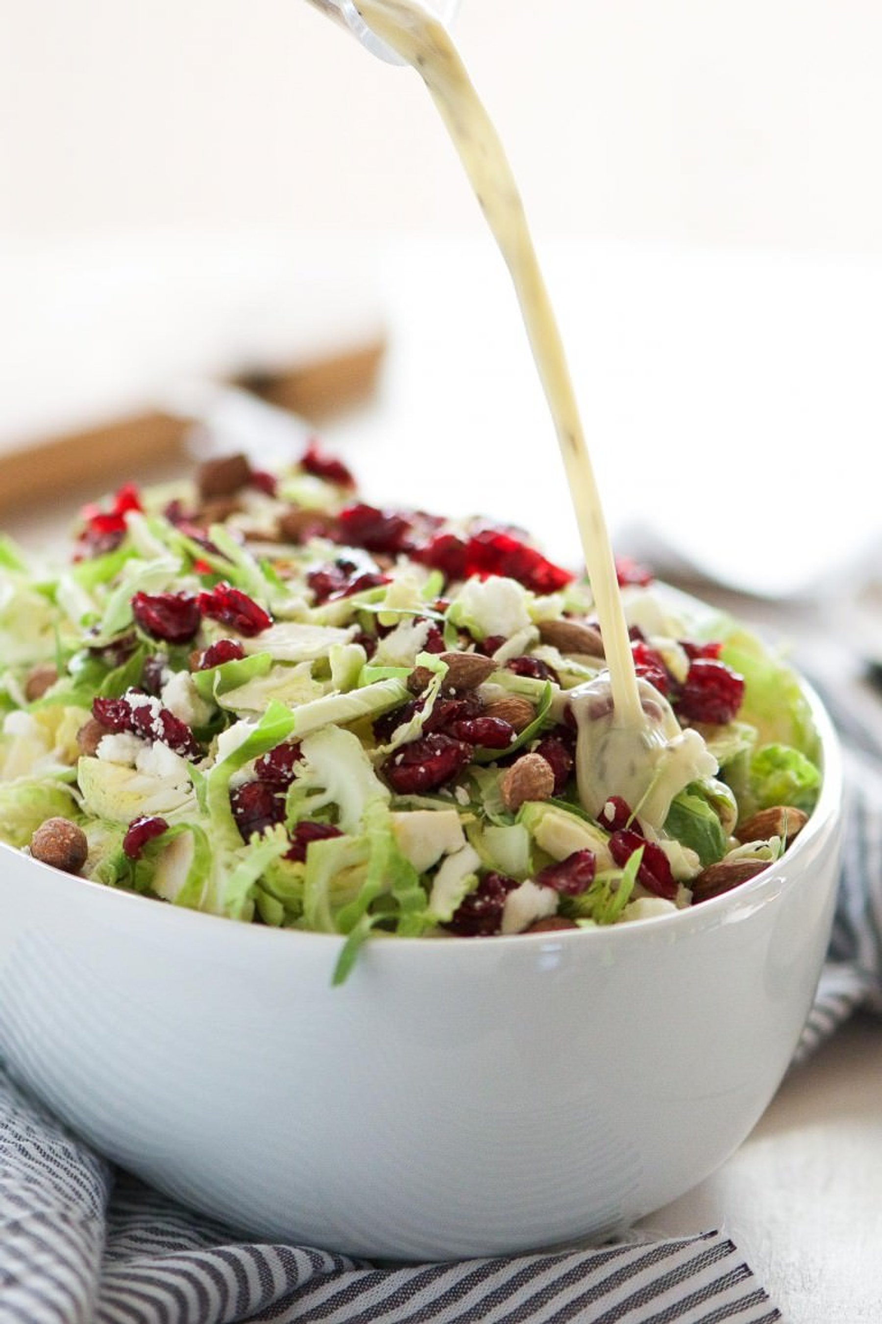 Spring Shaved Brussels Sprout Salad with Lemon Poppyseed Dressing is a fast and light salad that is full of tart cranberries, creamy goat cheese and salty almonds! And tossed in a flavorful, homemade citrus poppyseed dressing!