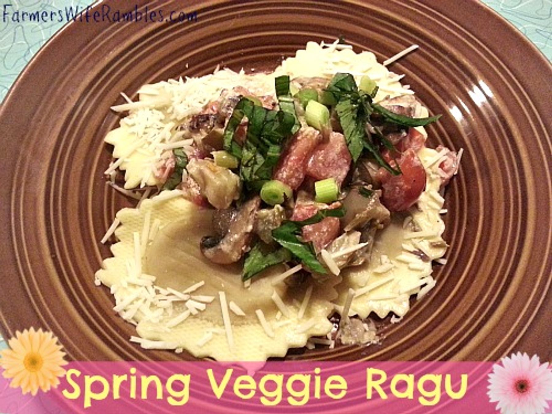 Spring Veggie Ragu is a great quick meal on any night of the week. It satisfies your hunger pangs, as well as adds a good portion of veggies to your day. Read more at http://farmerswiferambles.com/2013/05/spring-veggie-ragu-recipe-even-the-kids-will-love-it/#IaZ3QwAmF2eYWzUa.99