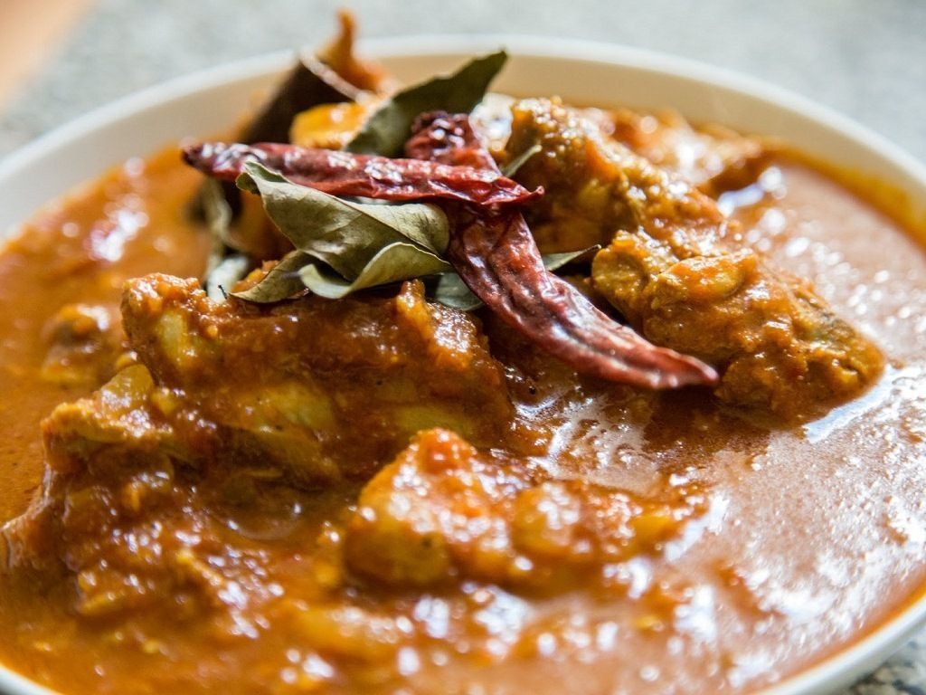 Tickle your palate with spicy Sri Lankan taste in chicken curry blended with coconut milk, coriander and red chilies.