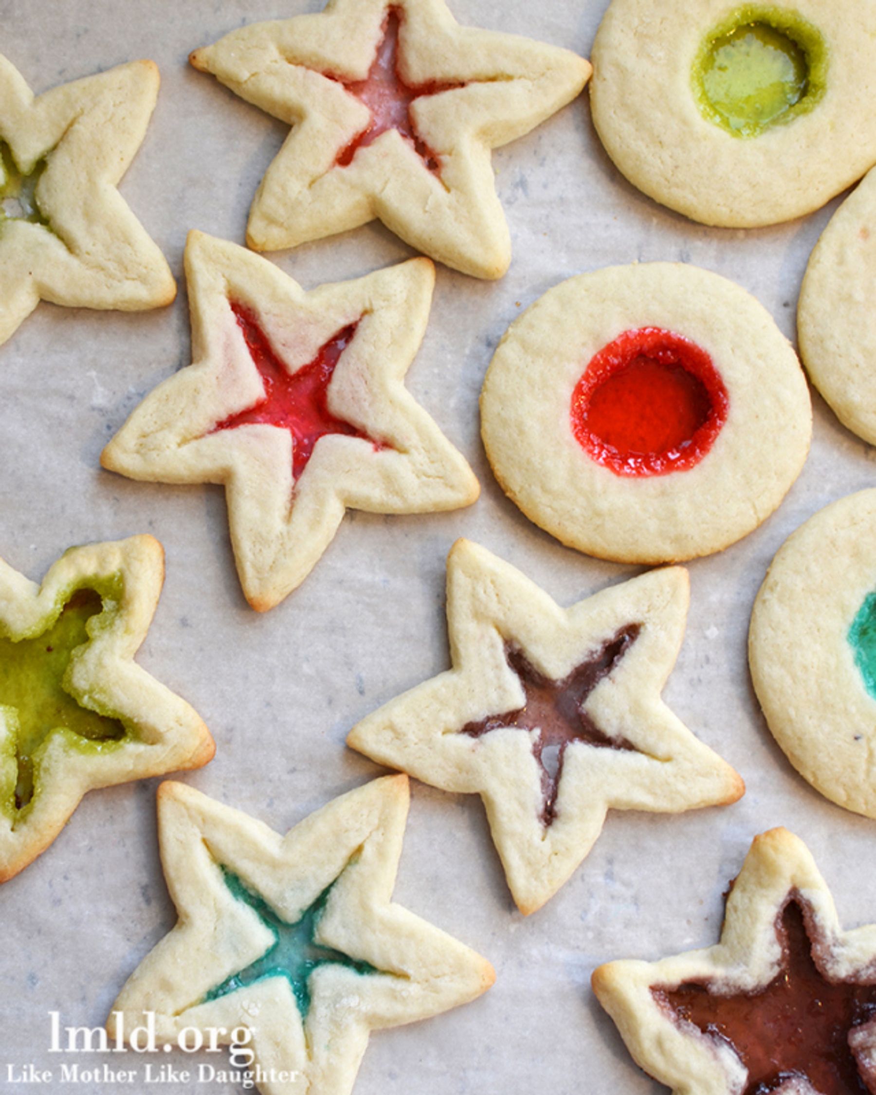 Sugar cookies filled with hard candies to make a pretty stained glass window