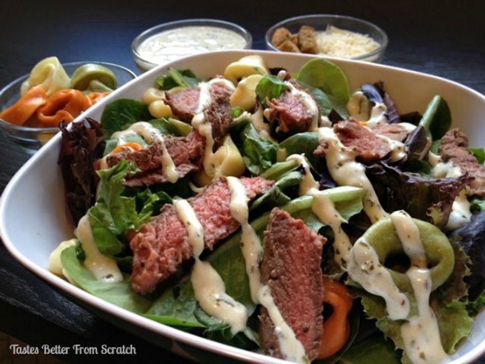Steak and Tortellini Salad with Creamy Pesto Dressing