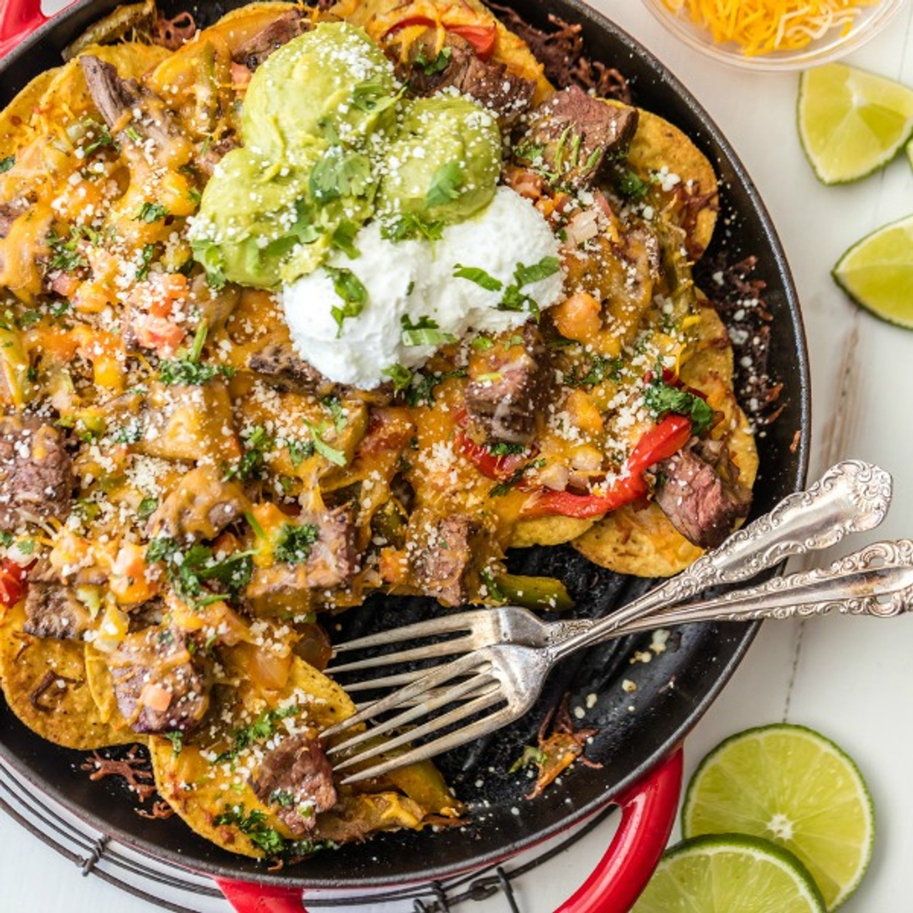 • (NOTE: This recipe should make two skillets worth of nachos. If you only need one, you can halve the recipe)