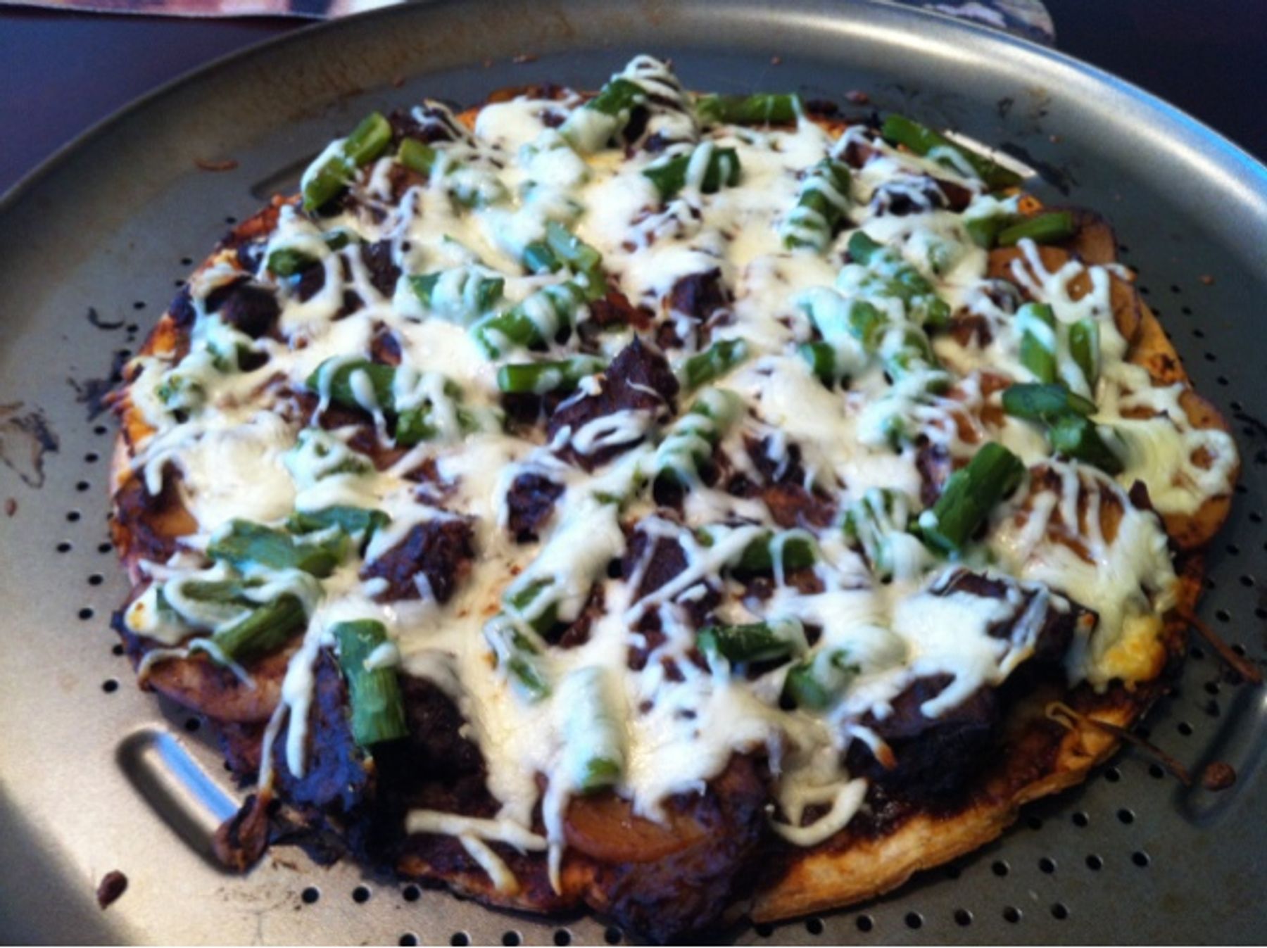 All the yummy goodness of a steak dinner, grilled on a pizza! Perfect for those lazy summer days!