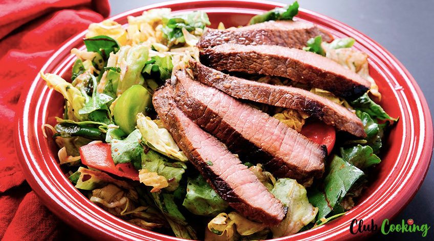 I absolutely love a filling hearty salad for lunch and have been making this pan seared steak salad recipe for a long time now. Perfectly juicy seared steak and fresh crisp greens and vegetables are match made in heaven. You will never feel deprived eating this nutritious meal even if it is a salad.
