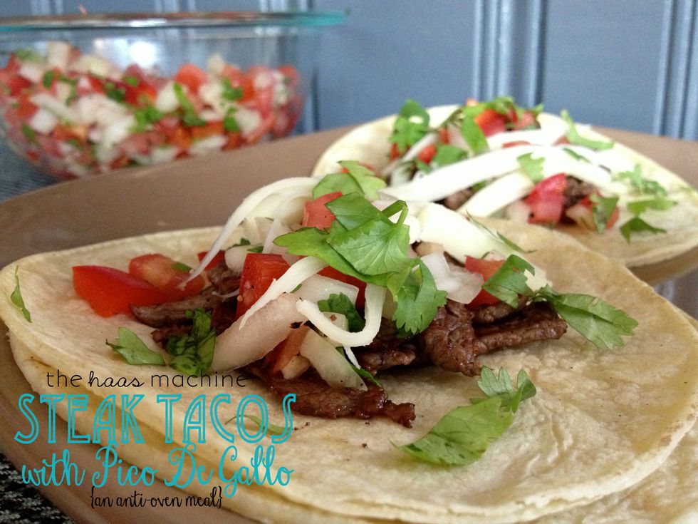 Prepare your Pico & set in the fridge until you're ready to use it. Make sure that you slice your (raw) steak very thin & season with a little bit of salt, pepper, & lime juice. We cooked our steak in a...
