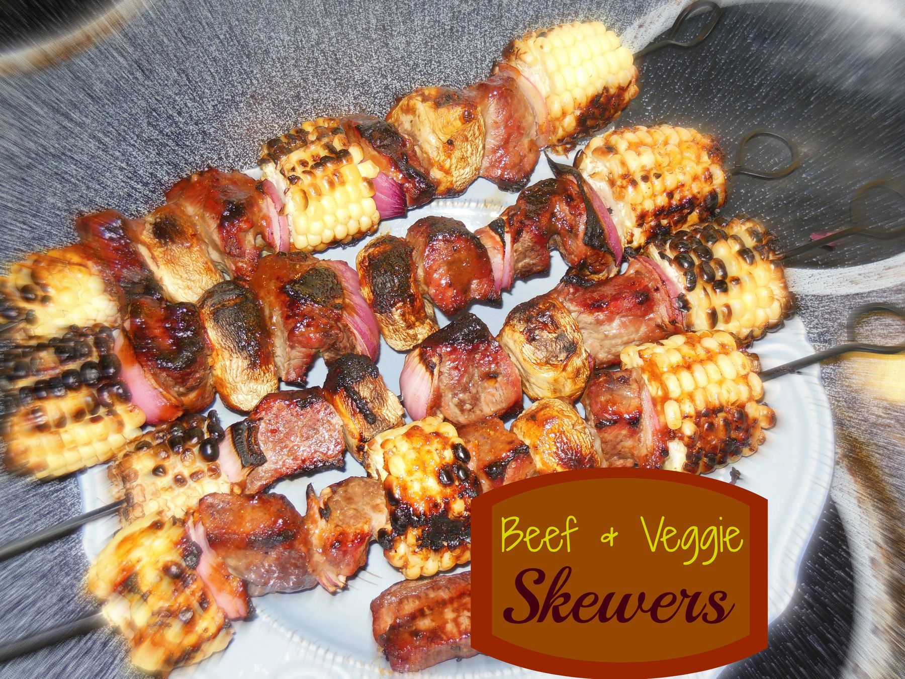 You all should know me by now.... I'll skewer almost anything and call it dinner. Today's offering is for steak and assorted veggies, specifically the family favorite corn on the cob. The best thing is by skewering the food, it cooks up quickly and is quite colorful too.