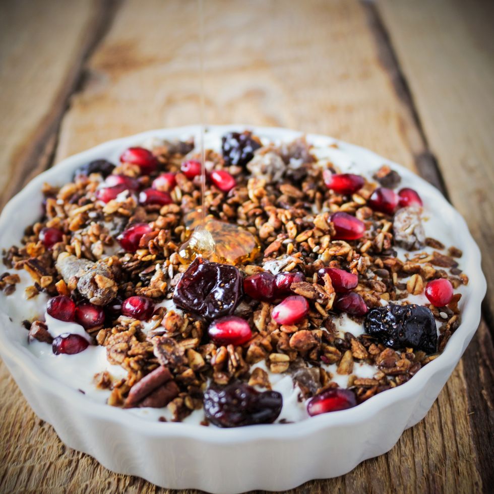 Crunchy, homemade, steel cut granola delivers a medley of healthy ingredients for a high-?fiber, low-?sodium, vegetarian, dairy-?free and gluten-?free breakfast. Make it yourself for a powerhouse nutrition boost!