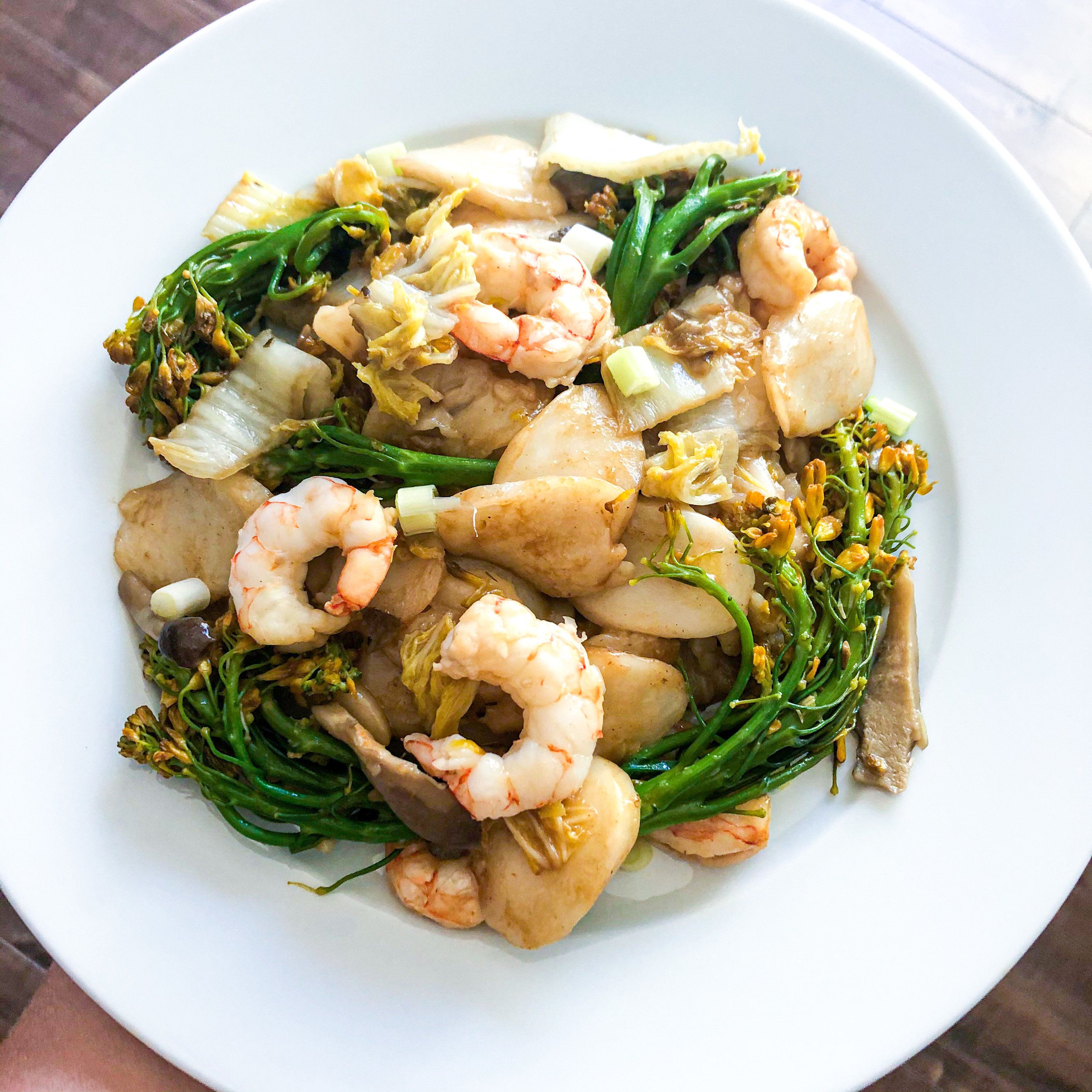 Delicious vegetable and shrimp stir fried Shanghai style rice cake. It is soft, chewy, sticky, and crunchy all in one bite! You don't want to miss this truly unique experience that you can make under 30 minutes.